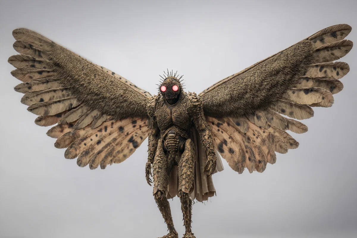 Step into a world where myth meets modernity with this striking illustration of a Mayan-inspired cryptid. This captivating artwork features a towering, four-armed insectoid creature, reminiscent of both the legendary Mothman and iconic figures from ancient cultures. With its massive crow-like wings adorned with spiderweb-like patterns and glowing red eyes, this piece brings a touch of the mysterious to any space.