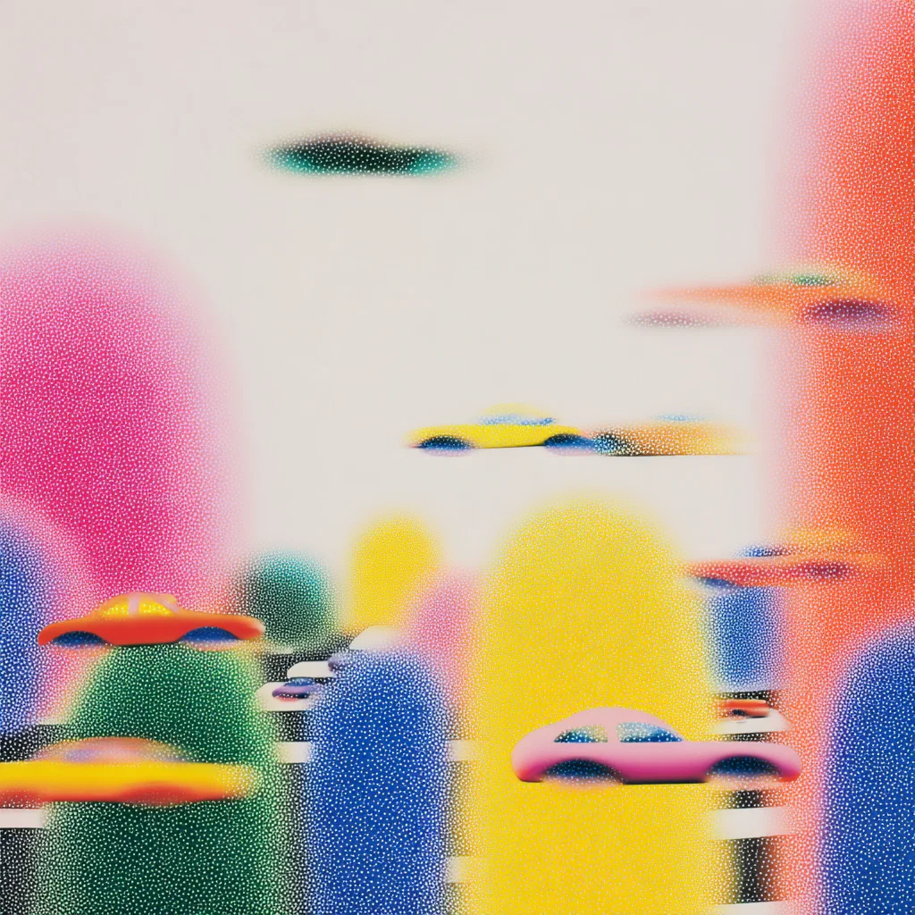 Step into a vibrant future with this stunning watercolor cityscape, where fluid organic shapes blend seamlessly with the dynamic energy of flying cars. The soft hues and gentle brushstrokes create a dreamy atmosphere, making this piece a captivating focal point for any space. Perfect for those who appreciate modern art and want to add a touch of whimsy to their decor.